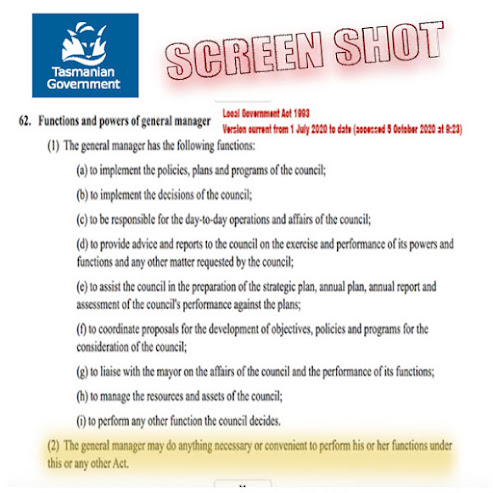 The team at Launceston's Town Hall will hide anything at the drop of a hat. The GM (AKA CEO) has that wonderful provision in the Local Govt Act, SECTION 62/2 that allows him to do whatever he likes and all by themselves representations to Council get to be 'buried bureaucratically' in order to keep critics and ratepayers confused and at bay.